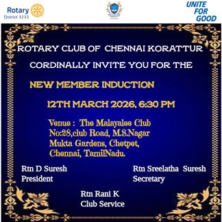 The Rotary Club of Chennai Korattur proudly inducted two new member. . .