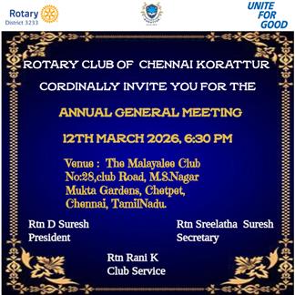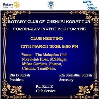 The Rotary Club of Chennai Korattur conducted its regular club meet. . .