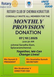 The Rotary Club of Chennai Korattur proudly donated monthly provisi. . .