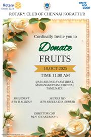 The Rotary Club of Chennai Korattur organized a fruits donation pro. . .