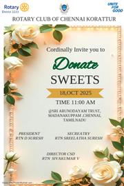 The Rotary Club of Chennai Korattur organized a sweets distribution. . .